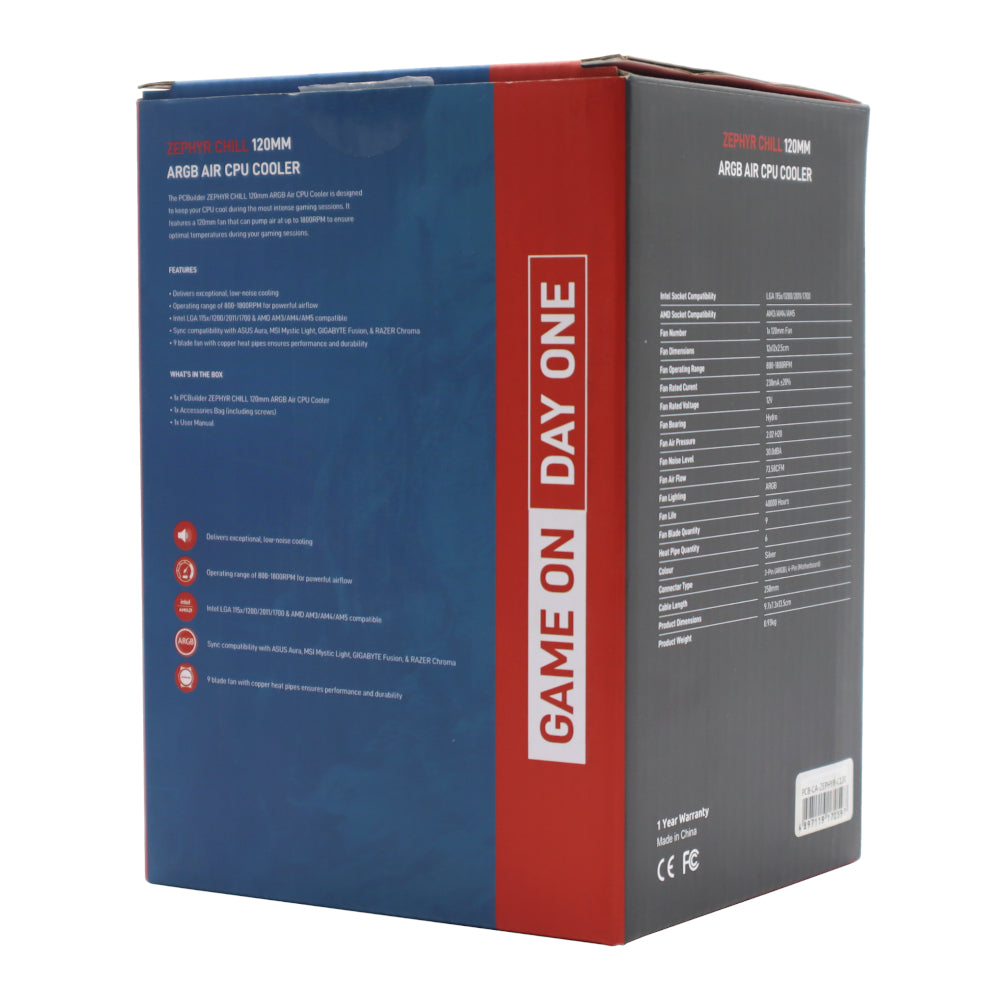 - PCBuilder ZEPHYR CHILL 120mm ARGB Air Cooler x1